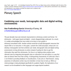 An article presenting the ColloCaid project is now available for online first view in Language Teaching. It is based on a plenary address given at TechLing 2017 by ColloCaid Principal Investigator Dr Ana Frankenberg-Garcia. In her talk, Dr Frankenberg-Garcia highlights a generalised underuse of dictionaries which is often attributed to a lack of training in Read more about ColloCaid Plenary in Language Teaching[…]